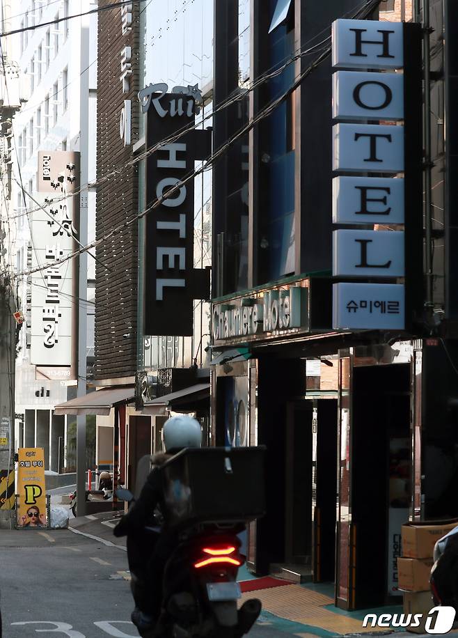 (서울=뉴스1) 구윤성 기자 = 23일 서울의 숙박업소 밀집지역이 한산하다. 한국경제연구원이 지난 21일 발표한 분기별 국내총생산(GDP) 자료에 따르면, 신종 코로나바이러스 감염증(코로나19) 발생 이후 숙박·음식, 교육, 문화 등 사회적 거리두기의 영향을 많이 받는 업종의 분기별 GDP가 IMF 외환위기 당시보다 더 큰 폭으로 감소했다. 2021.2.23/뉴스1