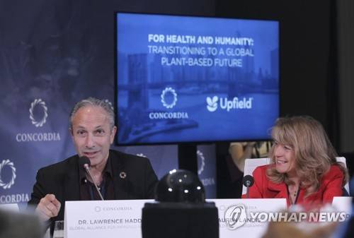 FILE - In this Sept. 23, 2019 file photo, Executive Director of Global Alliance for Improved Nutrition Dr. Lawrence Haddad, left, and Director of Nutrition WFP Lauren Landis attend a Strategic Dialogue at Concordia's Annual Summit, held at Grand Hyatt in New York. A group of 24 scientists, economists, researchers and other winners of the World Food Prize, including Haddad, sent a letter Tuesday, Feb. 23, 2021, to President Joe Biden asking him to focus on alleviating global hunger, poverty and malnutrition. (Photo by Donald Traill/Invision for Upfield/AP Images, File) 092319125929, 10121240, SEPT. 23, 2019 FILE PHOTO