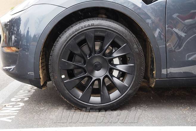 모델 Y의 첫 인상은 다소 낯설다. 이유는 크기에서 살펴볼 수 있다. 실제로 길이 4,694㎜, 너비 2,088㎜, 높이 1,443㎜로 현대자동차 싼타페보다 살짝 작거나 비슷한 크기를 가졌다. 반면 휠베이스는 2,890㎜로 국산 중형 SUV보다 크다. 앞쪽에 엔진이 없는 전기차 특성상 앞바퀴를 최대한 앞으로 뺀 결과다. 반대로 지상고는 일반 세단과 별반 다르지 않아서 SUV 느낌은 잘 들지 않는다.