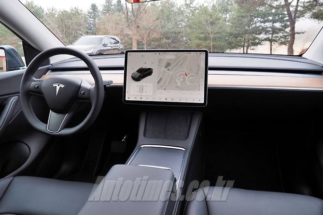 실내는 센터페시아 중앙에 놓인 15인치 와이드 스크린과 아담한 스티어링 휠이 전부다. 구성이 단순해 상대적으로 공간이 넓어 보인다. 화면 안에서는 차의 다양한 기능을 조작할 수 있다. 주행 정보와 기본적인 인포테인먼트는 물론 게임, 유머 사운드 등 상상 이상의 즐거움을 제공한다. 공조장치, 내비게이션, 오토파일럿 등의 기술 구현 그래픽도 섬세해 보는 맛을 더한다.