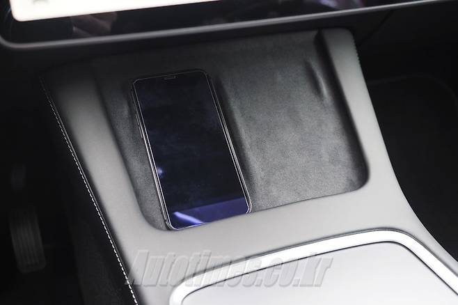 화면 아래에 놓인 휴대폰 무선 충전 패드는 적당한 각도를 제공하고 스웨이드로 마감해 편의성을 높였다. 심지어 양쪽으로 각 하나씩 놓여있어 동승자와 싸울 필요도 없다. 센터터널은 온통 수납함으로 꾸몄다. 깊이가 깊고 넓어 곽휴지나 웬만한 핸드백도 넣을 수 있다. 시동은 모델 3와 마찬가지로 컵홀더 뒤쪽에 카드키를 테그하면 된다.