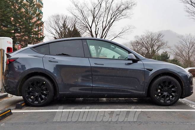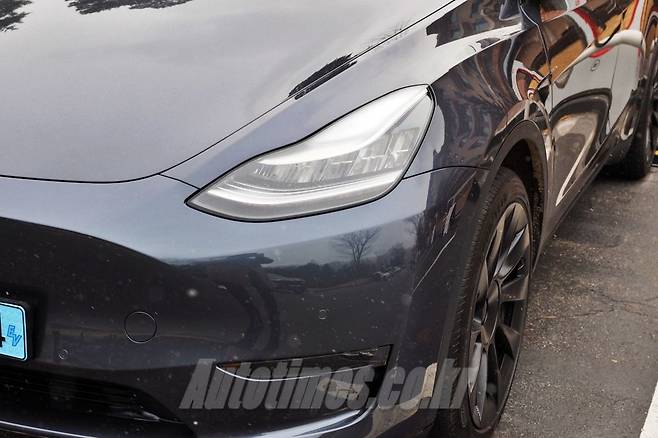 모델 Y는 약 75%에 달하는 대부분의 부품을 모델 3와 공유한다. 'ㄴ'자 모양의 LED 헤드 램프와 그릴이 없는 앞범퍼, 방향지시등 주변부까지 동일하다. 옆은 매끈하다. 팝업 형태로 숨어 있는 도어 손잡이와 군더더기 없는 캐릭터라인 덕분이다.