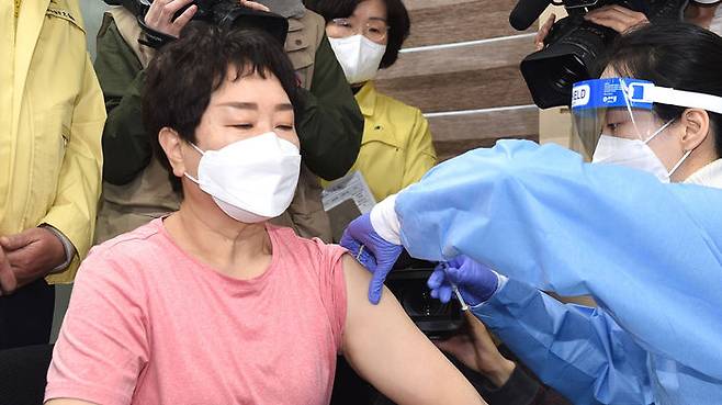 백신 첫 접종..요양보호사 이경순 씨 "백신 맞으니 안심"