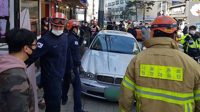오늘(26일) 오전 11시 40분쯤, 서울 종로구청 앞 교차로에서 60대 남성 A 씨가 몰던 승용차가 인도로 돌진하는 사고가 났습니다.