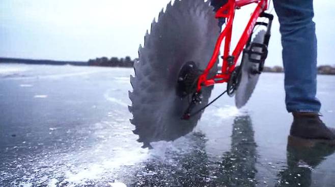 다만 자전거 때문에 얼음이 깨지면 위험하다거나, 자전거가 넘어지면 톱니바퀴에 다칠 수도 있다는 우려도 나오는데요.