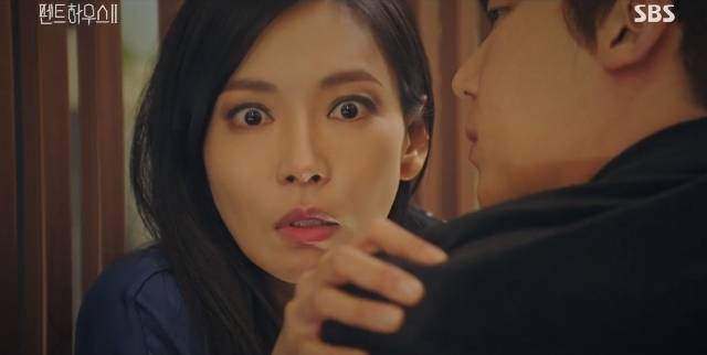 주단태는 천서진이 공연에 대타를 투입했다는 증거를 도비서에게 넘겨 받았다. 그 중엔 브로커와 주고받은 메시지도 있었다. 주단태는 이런 속셈을 숨기고 천서진과의 약속을 잡았다. 하지만 약속장소에 도착한 건 하윤철. 하윤철은 다짜고짜 그녀에게 입을 맞췄고, 그 시각 주단태는 약속장소에 도착했다. (사진=SBS '펜트하우스2' 캡처)