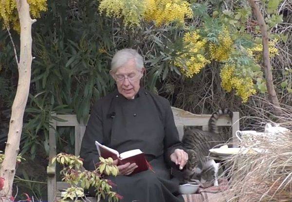 지난 16일에도 전 세계에서 수천 명이 지켜보는 가운데 미사가 열렸는데요, 이날 화면 속 윌리스 씨는 혼자가 아니었습니다. 회색 고양이 한 마리가 그 옆에 태연하게 앉아 있었던 겁니다.