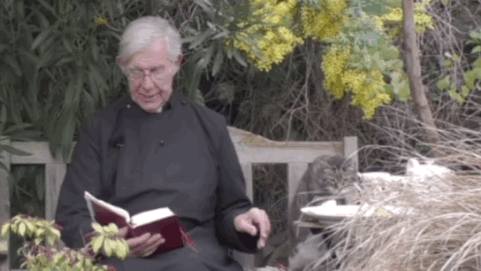 영상 속 회색 고양이는 캔터베리 대성당에 사는 14살 '타이거'로, 성당 정원에 머무르면서 온라인 미사에 종종 얼굴을 비추곤 하는 것으로 알려졌습니다.