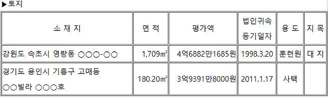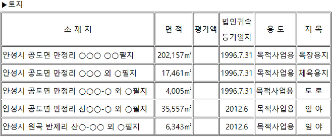 : 정관상 안성시 소재 건물은 평가액이 적어, 취재파일에는 총액수로 기재한다.