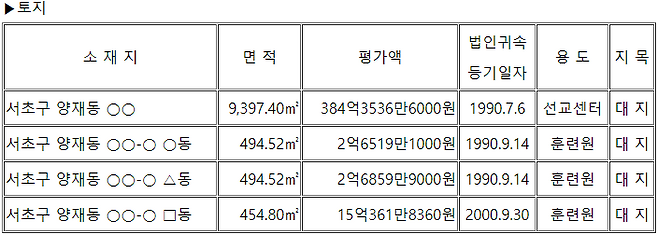 ● 횃불재단 재산 규모, 최소 1,800억 원대 추정