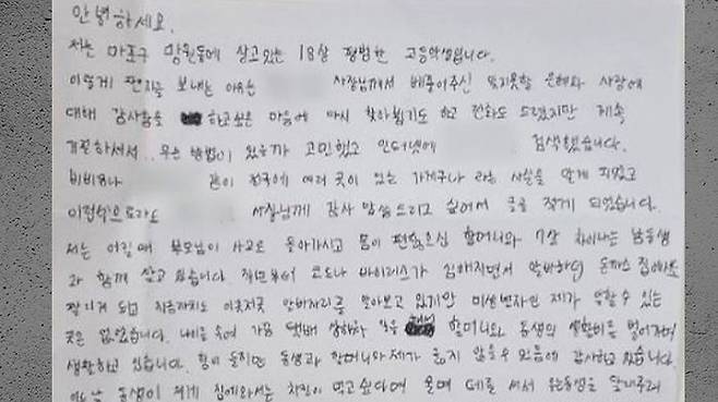 편찮은 할머니, 어린 동생과 함께 살고 있는 이 학생은 음식점에서 일하며 가장 역할을 해왔지만 최근에는 코로나19로 해고된 상태였다고 합니다.
