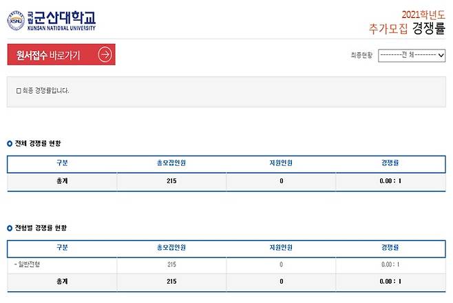 이 가운데 추가 모집인원이 100명 이상이면서 지원자 0명인 대학도 군산대(4차)와 목원대(4차) 2곳으로 나타났다. 군산대는 전북 소재 국립대다.
