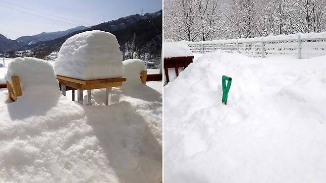 결국 펜션단지에 사는 5가구 10여 명 중 직장인은 지난 2일 출근하지 못한 채 제설에 매달려야 했고, 중·고교생 자녀도 눈삽과 넉가래를 들고 종일 눈더미와 씨름하며 새 학기를 맞아야 했습니다.