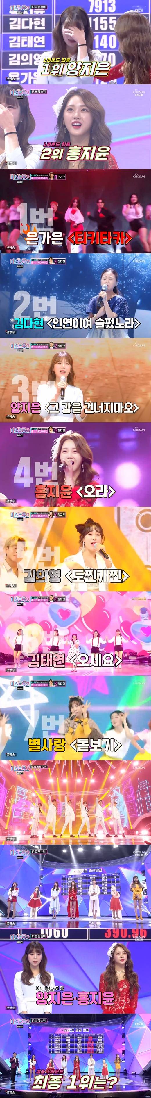 1라운드 결과 7위 별사랑, 6위 은가은, 5위 김의영, 4위 김태연, 3위 김다현, 2위 홍지윤, 1위 양지은이란 순위가 발표된 가운데 양지은은 수성을 위해, 나머지 6인은 반전을 위해 결승 2라운드 무대에 오른다.