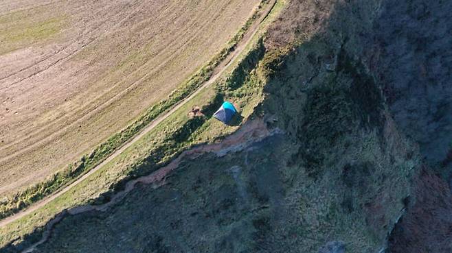 4일 영국 BBC 방송, 일간 가디언 등에 따르면 잉글랜드 동북부 노스요크셔주의 스테이스·휘트비 해안경비대는 지난달 27일 노스요크무어스국립공원에 있는 클리블랜드웨이 절벽에 텐트 하나가 설치돼 있다는 신고를 받고 출동했습니다.