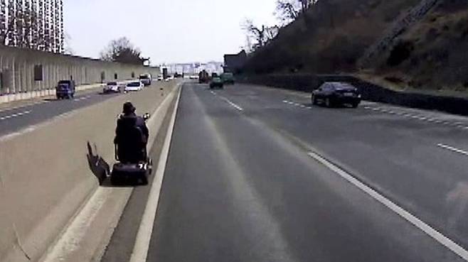 [영상] '차 쌩쌩' 고속도로에 등장한 전동 휠체어의 사연