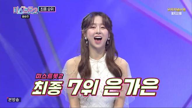 7위는 은가은, 어머니의 애창곡이었던 '애모'를 선곡했던 그는 무대 중간에 울컥하며 눈물을 보이기도 했다.