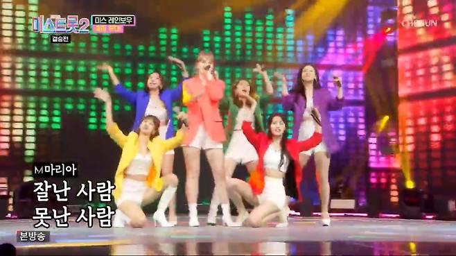 한편 '미스트롯2'에서 함께 달렸던 준결승 진출자들 미스 레인보우(윤태화, 황우림, 마리아, 허찬미, 류원정, 강혜연)가 '멋진 인생'으로 화려한 축하를 보냈다.