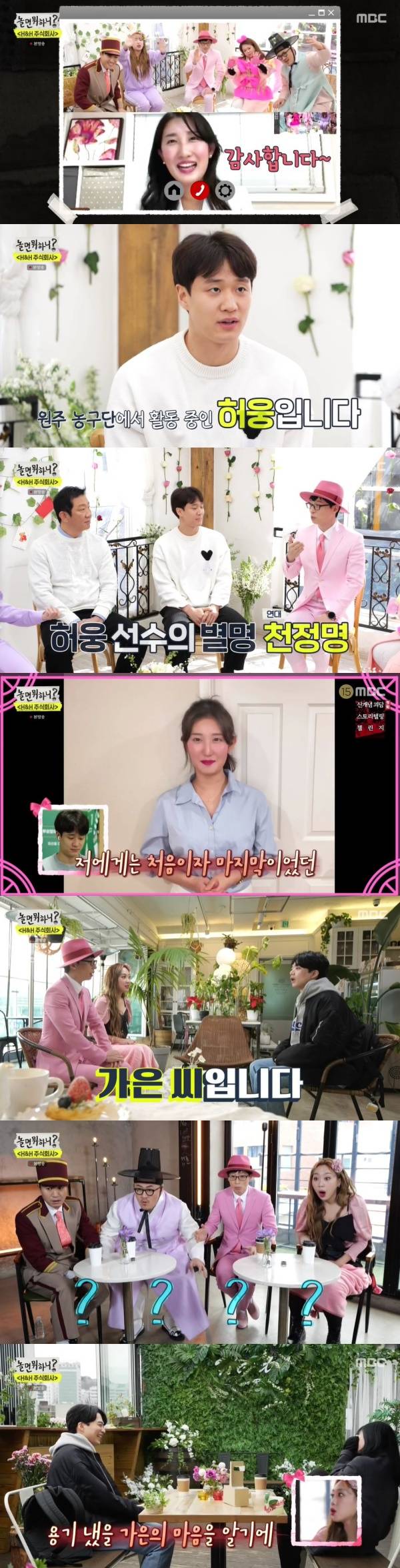 이날 H&H 주식회사 멤버들은 첫사랑을 의뢰를 접수했다. 의뢰인은 "농구를 몰랐던 저는 관중석에서 홀린 듯 연습 경기를 봤다"고 운을 뗐다. 그는 "어느 순간 저의 눈이 유독 한 명을 따라다닌 것을 깨달았다"며 "바로 6번 선수였다"고 말했다. 이어 "배우 천정명 씨를 닮아서 제가 붙인 별명이 연대 천정명이었다"며 "제 첫사랑이다"고 덧붙였다.