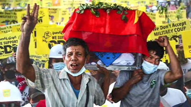 미얀마에서는 오늘(6일)도 쿠데타에 반대하는 시위와 이를 막으려는 강제 진압 속에서 혼란이 계속됐습니다. 군부는 저항운동의 상징이 된 19살 소녀의 무덤을 파헤치기까지 하며 갈수록 잔학한 행태를 보이고 있는데, 곧 계엄령을 선포할 거라는 소문도 돌면서 긴장감은 더 커지고 있습니다.