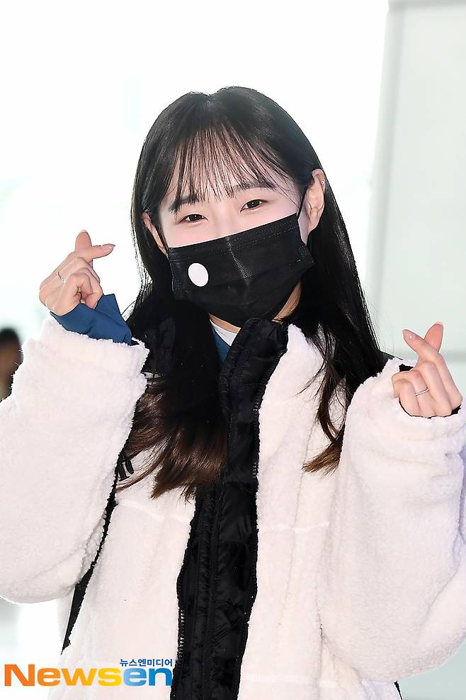 이달의 소녀(LOONA) 멤버 츄가 3월 7일 오후 서울 강서구 방화동 김포국제공항 국내선을 통해 SBS 예능 ‘정글의 법칙’ 촬영 차 제주도로 출발하고 있다.