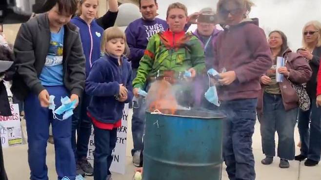 7일(현지시간) 워싱턴포스트(WP)에 따르면 미국 아이다호주에서는 어린이들까지 동원한 마스크 화형식이 열렸습니다.
