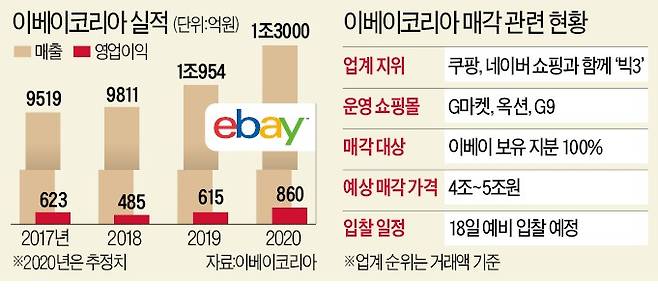 G마켓, 옥션, G9를 운영하는 이베이코리아 인수전이 뜨겁게 달아오르고 있다. 쿠팡이 미국 증시 상장(오는 11일 예정) 후 국내 투자를 더 공격적으로 하겠다고 밝힌 상황에서 이베이코리아 인수 문제는 161조원(작년 추정치) 규모의 국내 e커머스(전자상거래) 패권을 놓고 양보할 수 없는 카드가 됐다는 분석이 나온다.