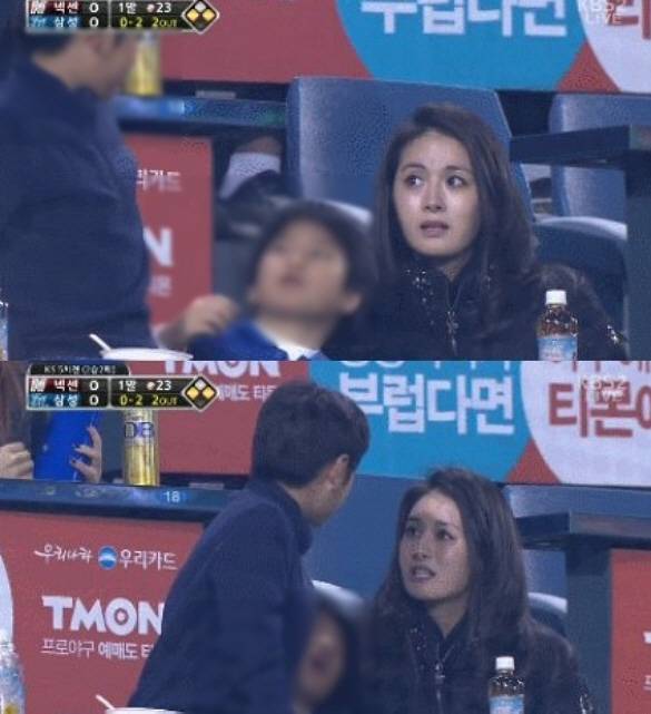 2014년 11월 한국시리즈 5차전에 출전한 이승엽의 경기를 관람하기 위해 잠실구장을 찾았던 이송정과 두 아들.