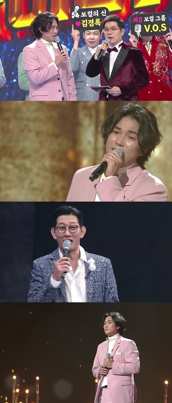 김경록은 '발라드'에서 '트로트' 모드로 순식간에 전환, 첫 소절만에 상대팀을 압도하며 전의를 상실하게 만들었다.