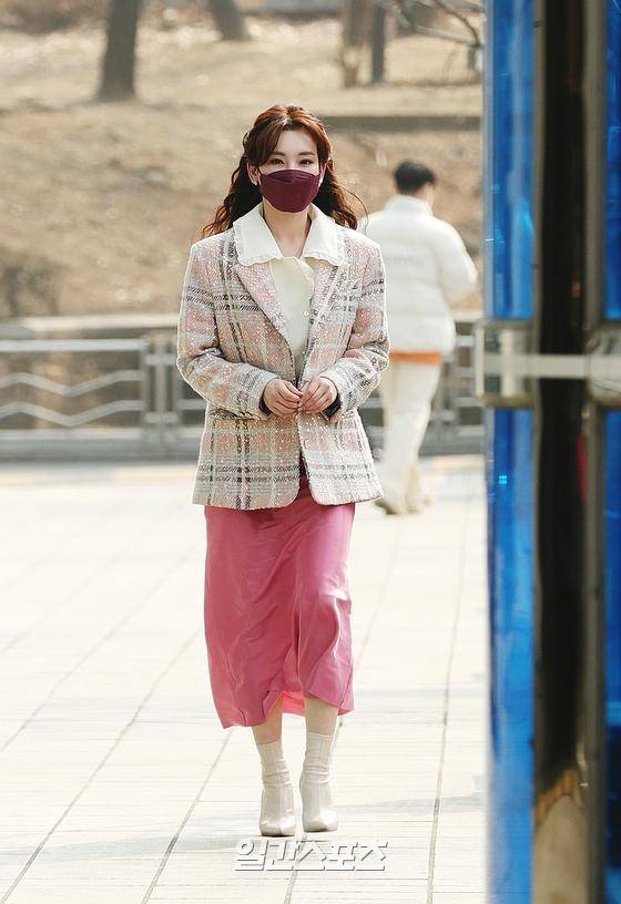 가수 정선아가 11일 오후 서울 목동SBS에서 열리는 '두시탈출 컬투쇼'에 출연하기 위해 방송국으로 향하고 있다.