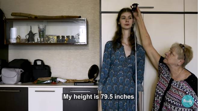 구독자 882만 명을 자랑하는 유튜브 채널 '트룰리'에 지난 8일 공개된 영상 게시물에 따르면, 우크라이나 크림주 항구도시 세바스토폴에 사는 류드밀라 티첸코바(25)는 큰 키에 팔, 다리가 비정상적으로 긴 것이 특징인 마르판증후군을 앓고 있다.