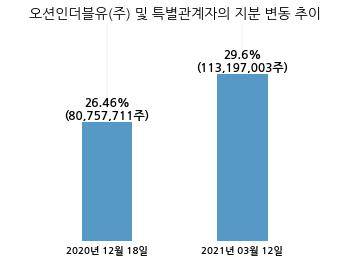 W홀딩컴퍼니는 오션인더블유(주) 및 특별관계자의 지분율이 26.46%에서 29.6%로 변동했다고 12일 공시했다.