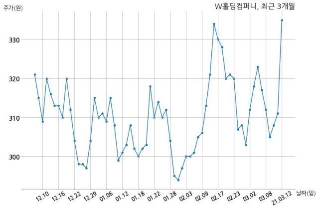 한편, W홀딩컴퍼니는 장 마감 이후 해당 기업공시를 발표했으며 오늘 종가가 335원, 거래량은 45,682,765주로, 직전 거래일 대비 24원(+7.72%) 상승했다.