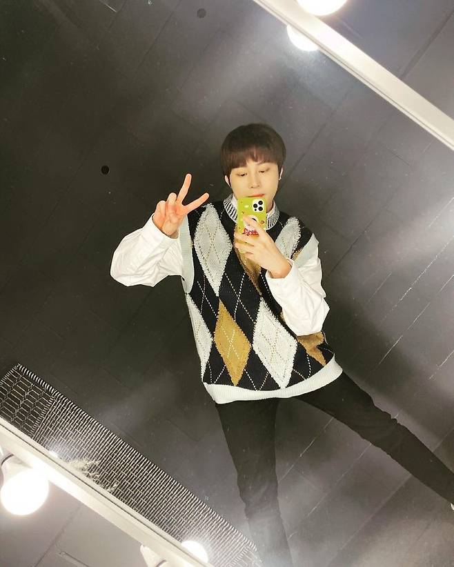 사진 속 하성운은 니트 조끼를 입은 채 거울 셀카를 찍고 있다.