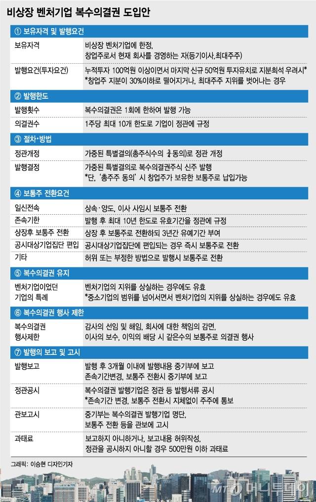 제도 도입을 추진 중인 중기부는 복수 의결권 발행 절차와 요건을 강화해 우려를 해소하겠다는 입장이다.