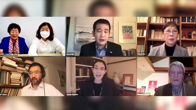 하버드대 램지어 교수의 위안부 피해자 왜곡 논문을 비판해 온 미국 학자들이 이용수 할머니와 화상으로 만났습니다.