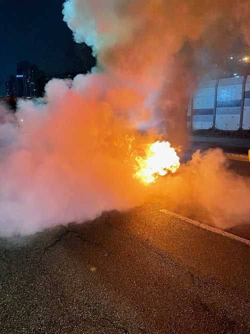 오늘(14일) 저녁 8시쯤 경기도 수원시 장안구의 도로를 달리던 승용차에서 불이 났습니다.