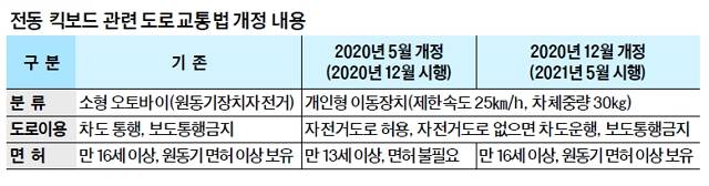 문제는 개정 도로교통법에 전동 킥보드를 개조해 속도 제한을 해제하는 것을 처벌하는 규정이 없다는 것이다. 전문가 대부분은 지금으로서는 속도위반이나 음주운전 등만 처벌할 수 있다고 본다. 주관 부처인 국토교통부 관계자는 “전동 킥보드 관련 처벌 규정은 도로교통법 외에는 없고, 불법 개조 처벌조항은 국회에 계류 중인 전동 킥보드 관련법에 포함돼 있다”고 설명했다.