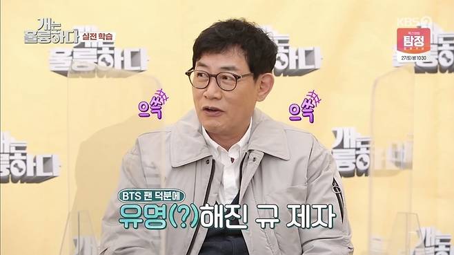 이어 강형욱은 "두 분 다 해외에서 유명한 분들이니까"라고 이경규와 장도연을 칭찬했고, 장도연은 "저는 일절 아니다"라고 부정했다. 망설임 없이 그렇다고 인정한 이경규는 "방탄소년단 진과 '한끼줍쇼'라는 프로그램을 같이 찍었는데 그 이후로 방탄소년단 좋아하는 친구들이 저를 다 알아요. 숟가락 올리기죠"라고 뿌듯한 마음을 표현했다.