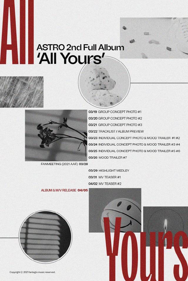 완전체 출격으로 대중의 기대치를 한 몸에 받고 있는 아스트로는 현재 컴백 준비에 한창이며, 한층 더 신선하고 파워풀한 아스트로의 매력을 담은 '올 유어스'는 4월 5일 오후 6시 각종 음원사이트를 통해 공개된다.