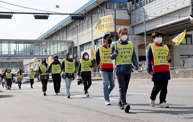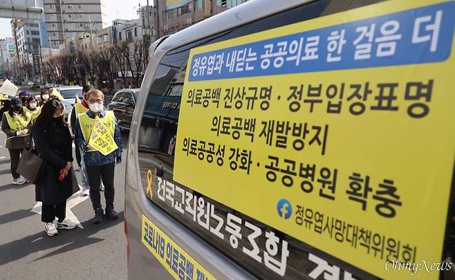 그는 의료진에게 공식 사과를 받은 건 '딱 한번'이라고 했다. 며칠 전, 도보행진 후 이뤄진 간담회에서 경기의료원 수원병원 정일용 원장은 정씨에게 "미안하다"라고 말했다. 정씨는 "K방역의 성과 뒤에 의료 공백이 있었다고 인정한 병원장의 말에 외려 힘을 얻었다"고 했다.