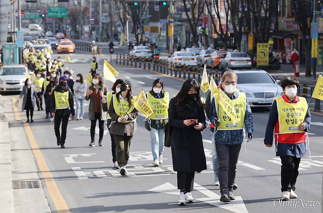 도보행진에 동참한 이들은 거리두기를 준수하며 9인씩 떨어져 걸었다. 집합금지 조치에 따라 식당에서 밥을 먹는 대신 도시락으로 끼니를 때웠고, 마스크를 쓴 채 대화를 최소화하며 묵묵히 걸었다.