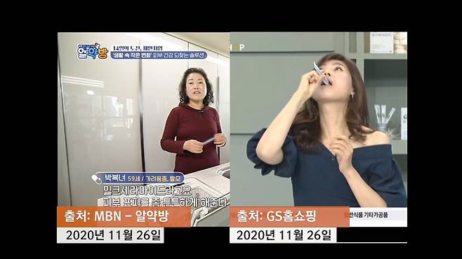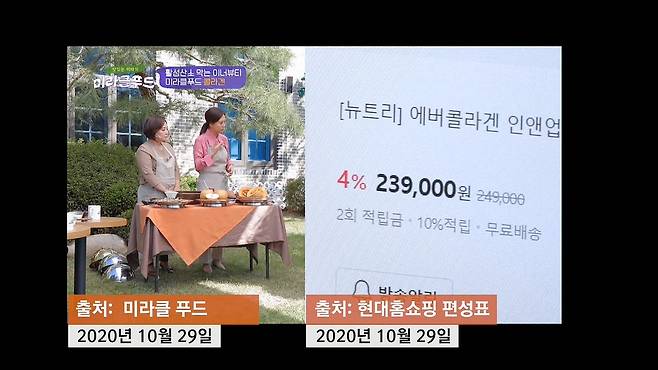 건강 교양 프로그램에서 홍보 중인 식품, 주변 홈쇼핑 채널에서 팔려