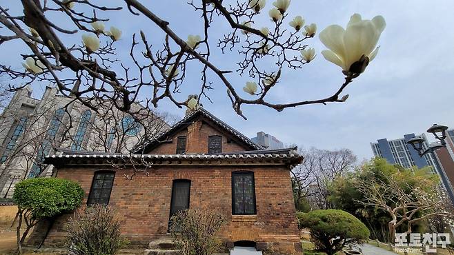 봄의 교향악이 울려 퍼지는 청라언덕 위에 백합은 아직 피지 않고 백목련이 반겨주네요.