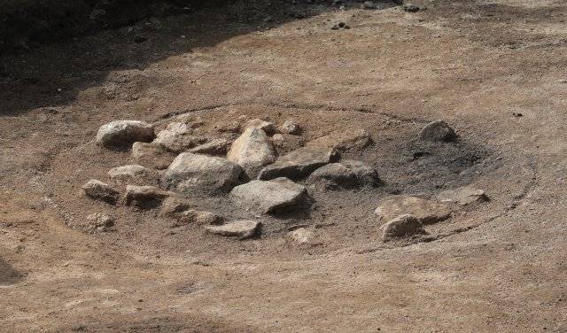 뭔가의 받침으로 쓰였을 것 같은 돌모듬입니다. 기둥이나 뭔가 무거운 것을 올려놨을 것 같습니다.