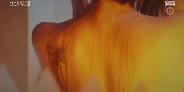심수련인지 나애교인지 헷갈리는 정체, 곧 답이 드러났다. 이날 나애교는 주단태와 질투 섞인 다정한 전화통화를 끊고 홀로 샤워를 하러 들어갔다. 그러면서 클로즈업 된 나애교 어깨 나비문신. 문신은 물이 닿자 서서히 지워졌고 이내 나애교는 단발머리 가발까지 벗어 던졌다. 가발 안에 숨겨진 긴 머리는 그녀의 정체가 복수를 위해 돌아온 심수련임을 확신케 하는 대목이었다.