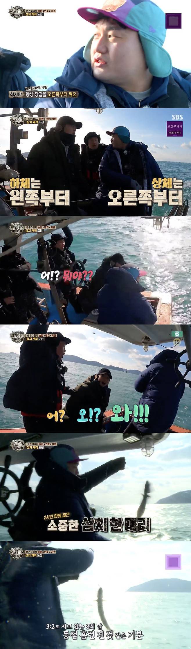 시간만 흐르고 삼치 낚시에 도전한 지 2시간이 되던 그때 신승환이 무언가를 발견하고 소리를 질렀다. 그의 시선을 따라가자 낚싯줄에 삼치 한 마리가 걸려든 것이 포착되었다.