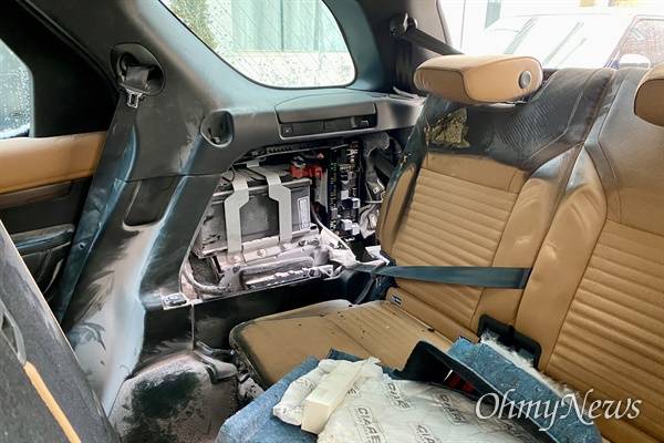 김씨의 차량은 재규어랜드로버코리아(이하 랜드로버코리아)가 수입해 판매 중인 7인승 다목적스포츠유틸리티차(SUV)인 디스커버리다. 차량 값만 1억원이 넘는다. 세 자녀를 둔 그는 지난 2018년 7월에 구입한 이후 2년 넘게 운행 중이었다. 차량 화재는 20여 분만에 진화됐고, 차량 외부까지 크게 번지지 않은 것이 그나마 다행이었다. 하지만 차량 내부는 큰 손상을 입었다. 차량 안쪽 3열 좌석 일부분은 화재로 형체가 크게 손상됐고, 주변 역시 전기 배선 등이 타버려 시커먼 그을음 투성이였다.