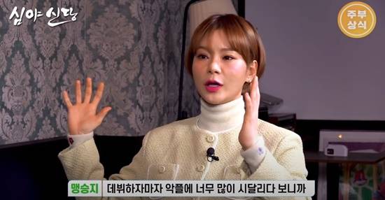 개그우먼 맹승지가 '진짜 사나이'에서 불거진 태도 논란 후 고통 받았던 당시를 떠올렸다.