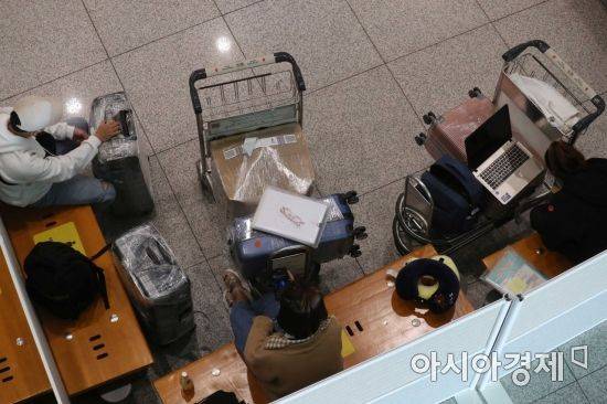 24일 인천국제공항 1터미널 입국장에서 입국자들이 전용 버스를 기다리고 있다. /문호남 기자 munonam@
